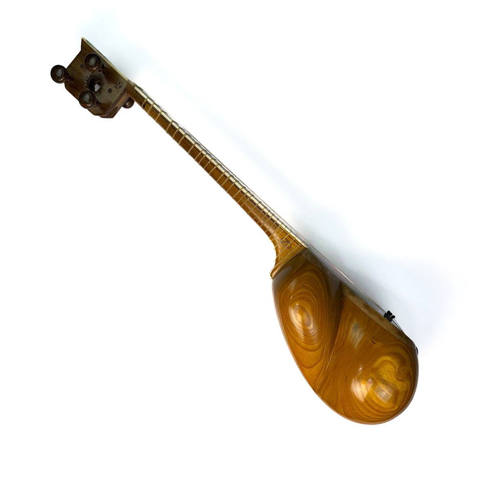 The Persian Tar is a prominent stringed instrument in Iranian classical music, renowned for its rich timbre and intricate playing style. With a flat, oval body and a long neck, the tar typically has six strings, often made of metal. It is played with a plectrum, allowing for dynamic strumming and intricate melodic lines.
